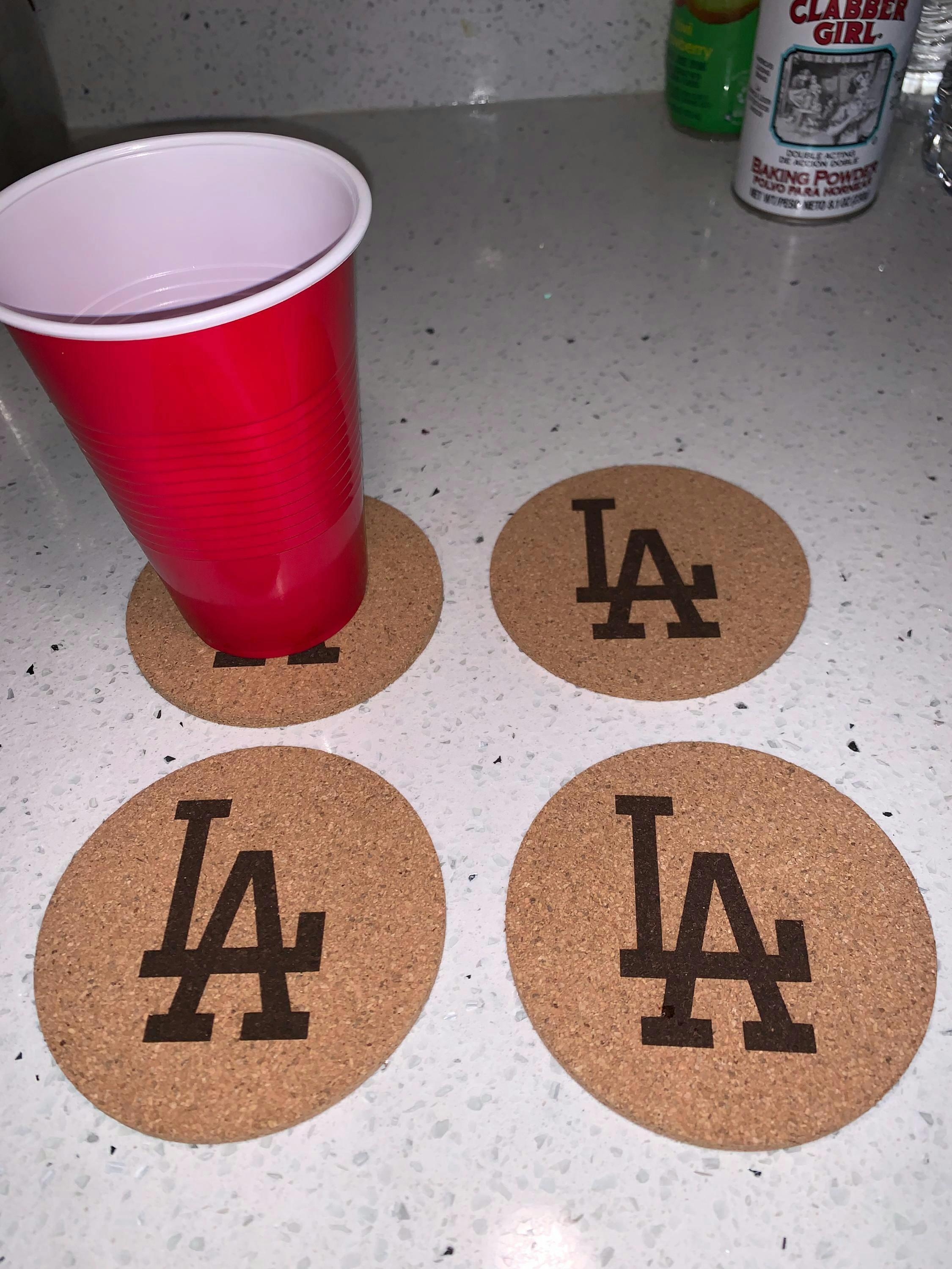Set of 4 round MLB baseball cork coasters.